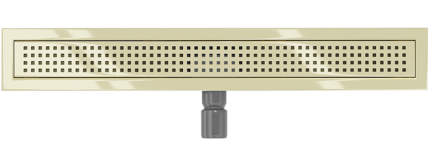 The linear drain is mounted at a depth of only 52 mm. The low depth allows for easier surface preparation for the drain installation and easy leveling, ensuring high aesthetics and effective water drainage.