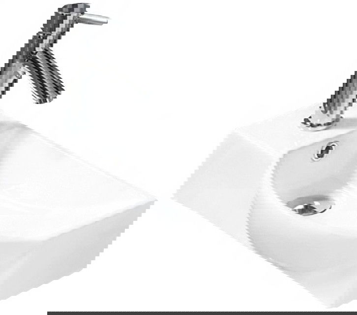 The sink has a hole in which we can mount the battery. This saves a valuable space in the bathroom and emphasize its aesthetics. This solution also allows you to easily keep clean around the sink.