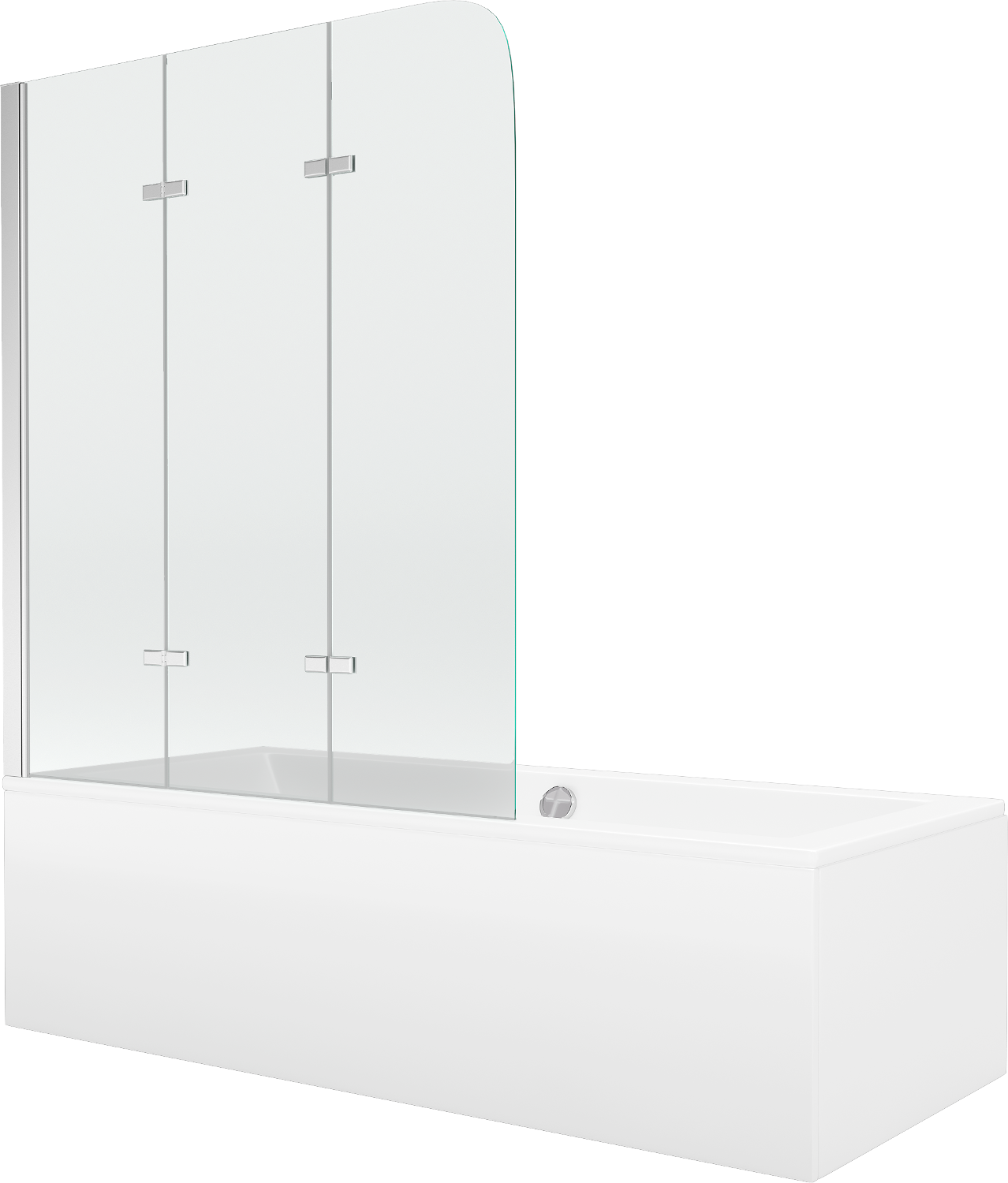 Mexen Cube 170 x 80 cm Rectangular Bathtub with Panel and 3-Panel Screen 120 cm, Transparent, Chrome - 550517080X9012030100