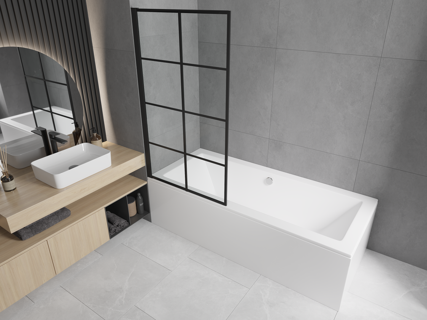 Mexen Cube rectangular bath 170 x 80 cm with casing and 1-wing screen 80 cm, black pattern fix - 550517080X9308007077