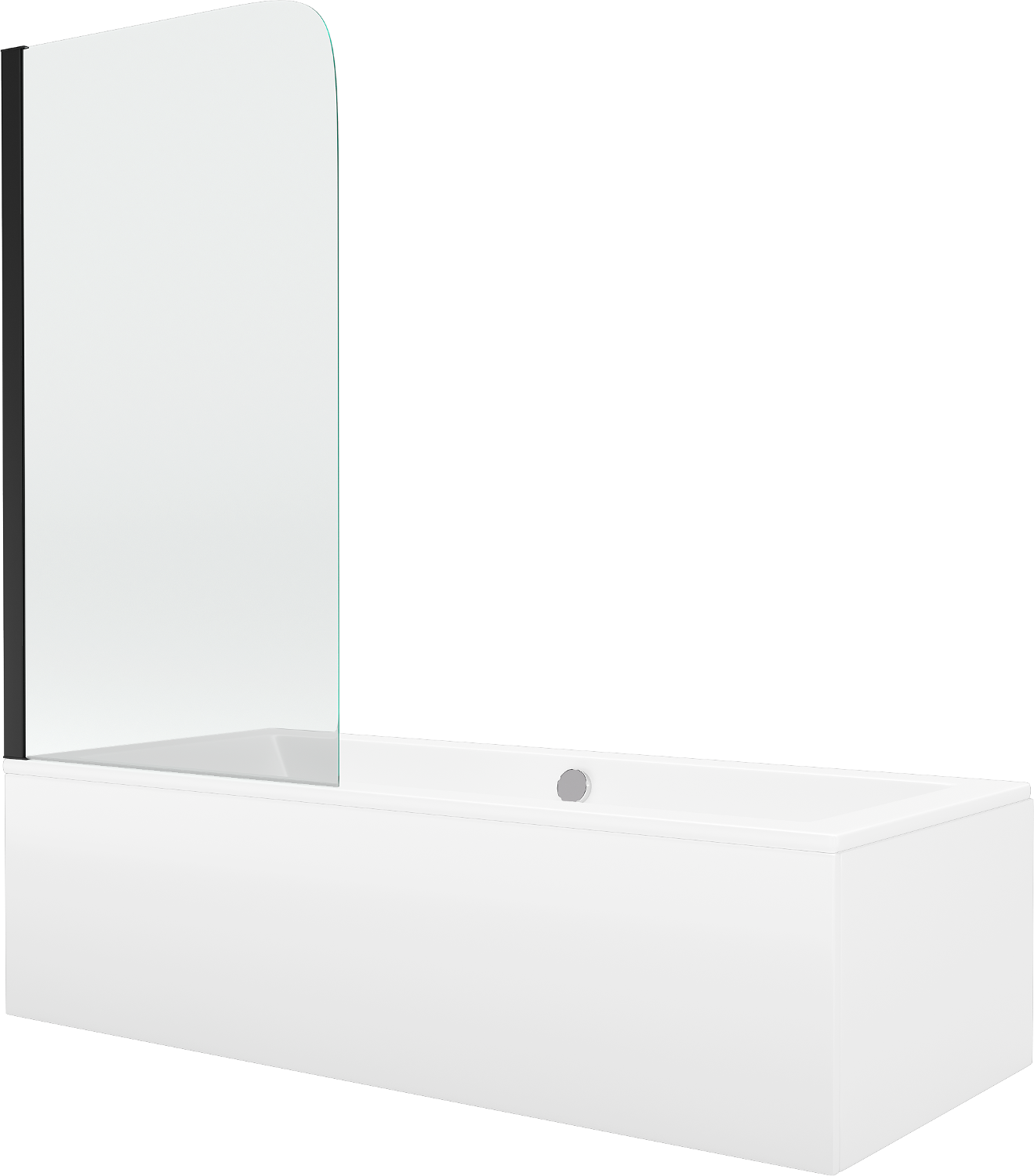 Mexen Cube rectangular bathtub 180 x 80 cm with casing and 1-leaf screen 70 cm, transparent, black - 550518080X9007017000