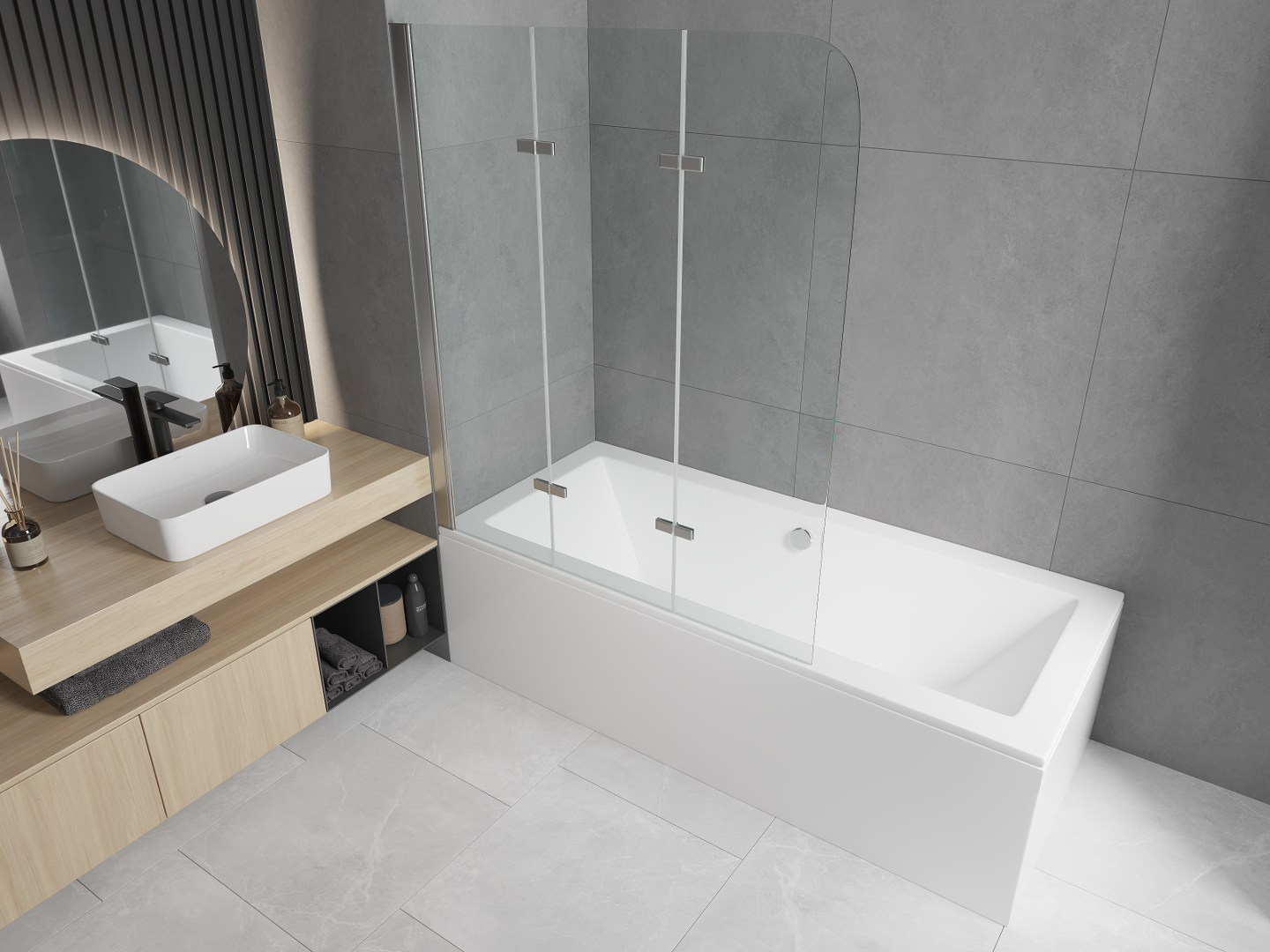The screen is made of three wings with the possibility of folding. This solution saves more space in the bathroom and allows you to freely use the remaining space when we do not use the bathing area.
