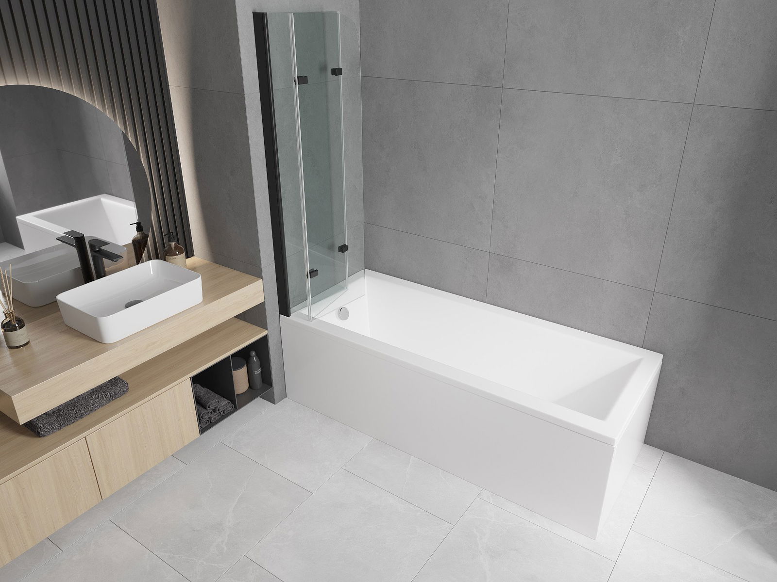 Mexen Cubik rectangular bath 150 x 70 cm with enclosure and 3-panel screen 120 cm, transparent, black - 550315070X9012037000