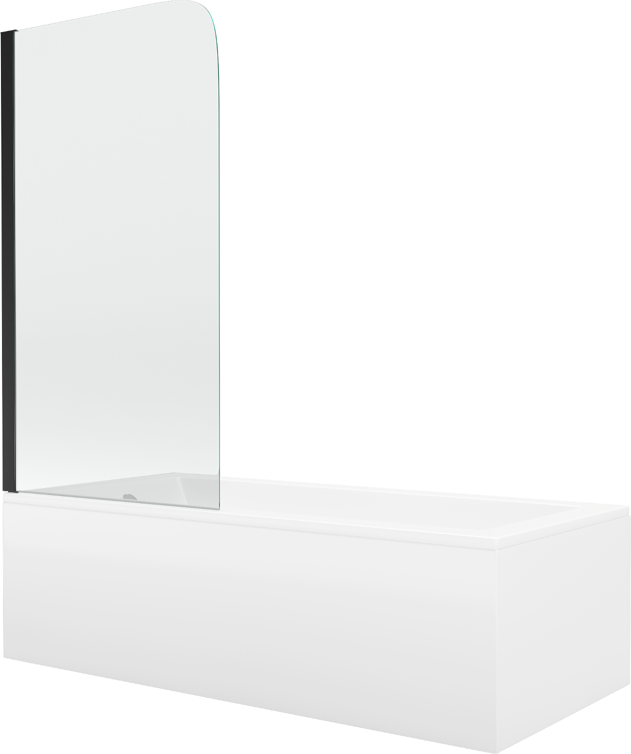 Mexen Cubik rectangular bath 160 x 70 cm with casing and 1-wing screen 70 cm, transparent, black - 550316070X9007017000