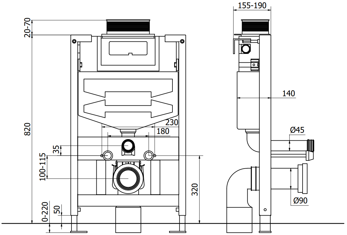 The ability to adjust the height of the frame in the range of 0-22 cm allows for a better match to various technical conditions in the bathroom. The flexible adjustment range ensures convenience of assembly and obtaining the optimal height of the frame.