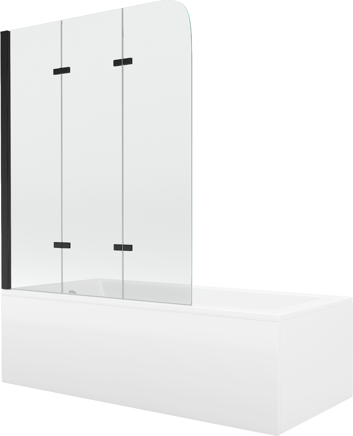 Mexen Cubik rectangular bath 170 x 70 cm with casing and 3-panel screen 120 cm, transparent, black - 550317070X9012037000