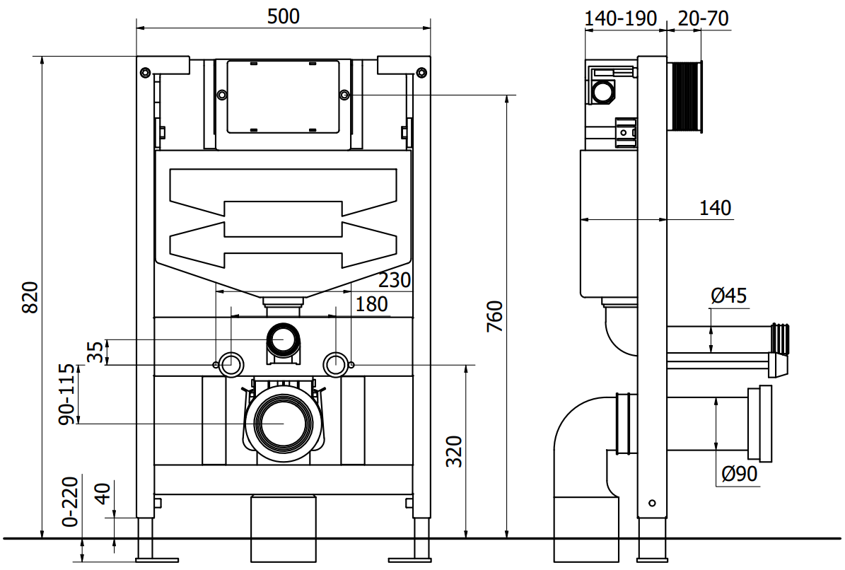 The ability to adjust the height of the frame allows for better adaptation to different technical conditions in the bathroom. The flexible adjustment range provides convenience in installation and achieving the optimal frame height.