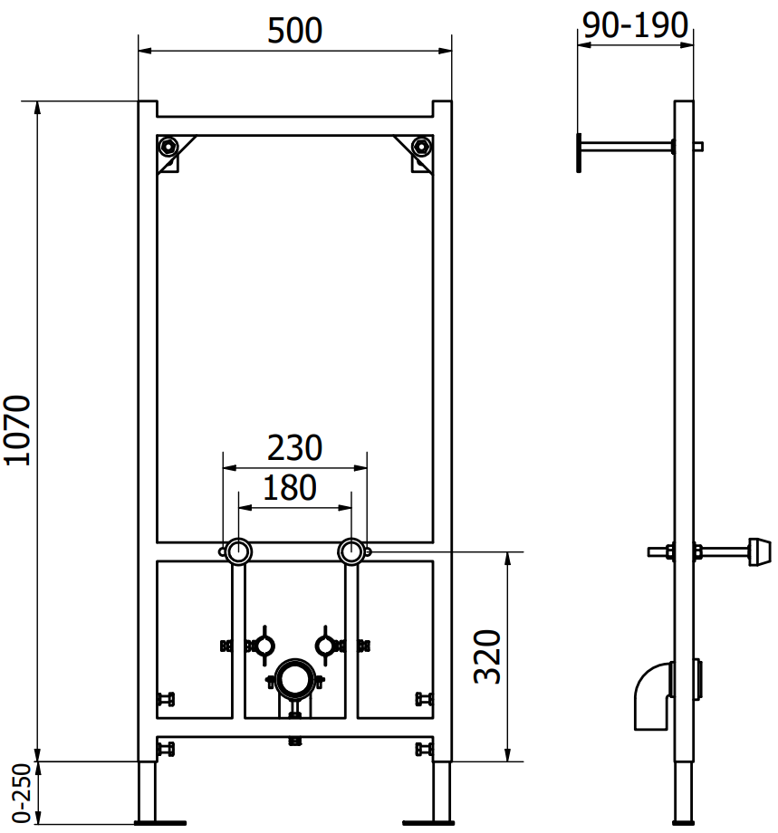 The ability to adjust the height of the frame in the range of 0-25 cm allows for a better match to various technical conditions in the bathroom. The flexible adjustment range ensures convenience of assembly and obtaining the optimal height of the frame.