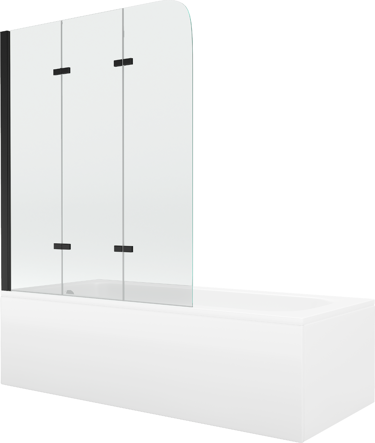 Mexen Vega rectangular bathtub 160 x 70 cm with casing and 3-panel screen 120 cm, transparent, black - 550116070X9012037000