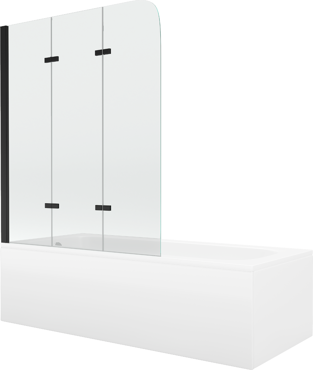 Mexen Vega rectangular bath 170 x 70 cm with casing and 3-panel screen 120 cm, transparent, black - 550117070X9012037000
