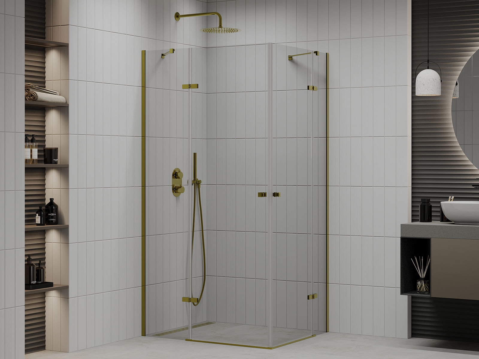 Mexen Roma Duo Hinged Shower Cabin 90 x 80 cm, Transparent, Gold - 854-090-080-50-00-02