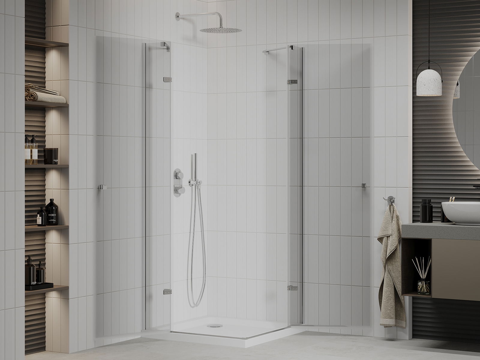 Mexen Roma Duo 70 x 70 cm Hinged Shower Cabin, Transparent, Chrome + Flat Shower Tray - 854-070-070-01-02-4010
