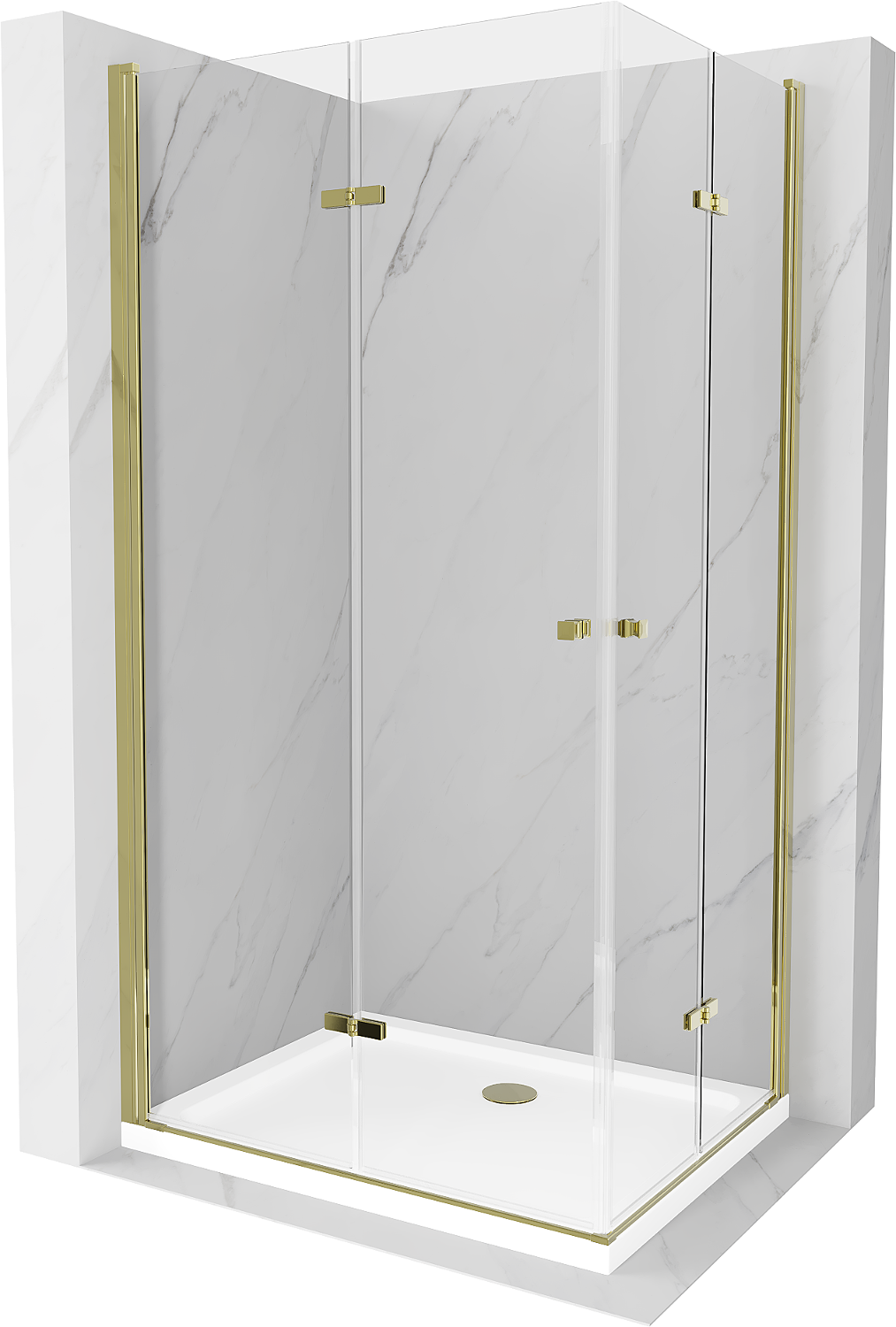Mexen Lima Duo folding shower cabin 80 x 70 cm, transparent, gold + Flat shower tray - 856-080-070-50-02-4010G