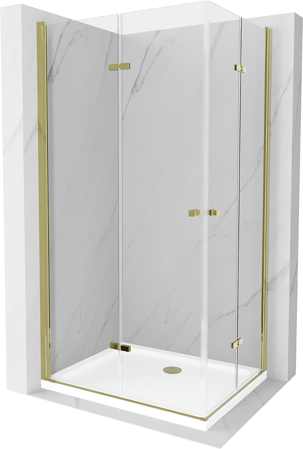 Mexen Lima Duo Folding Shower Cabin 90 x 80 cm, Transparent, Gold + Flat Shower Tray - 856-090-080-50-02-4010G