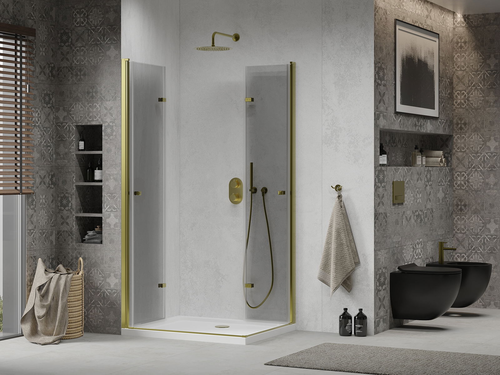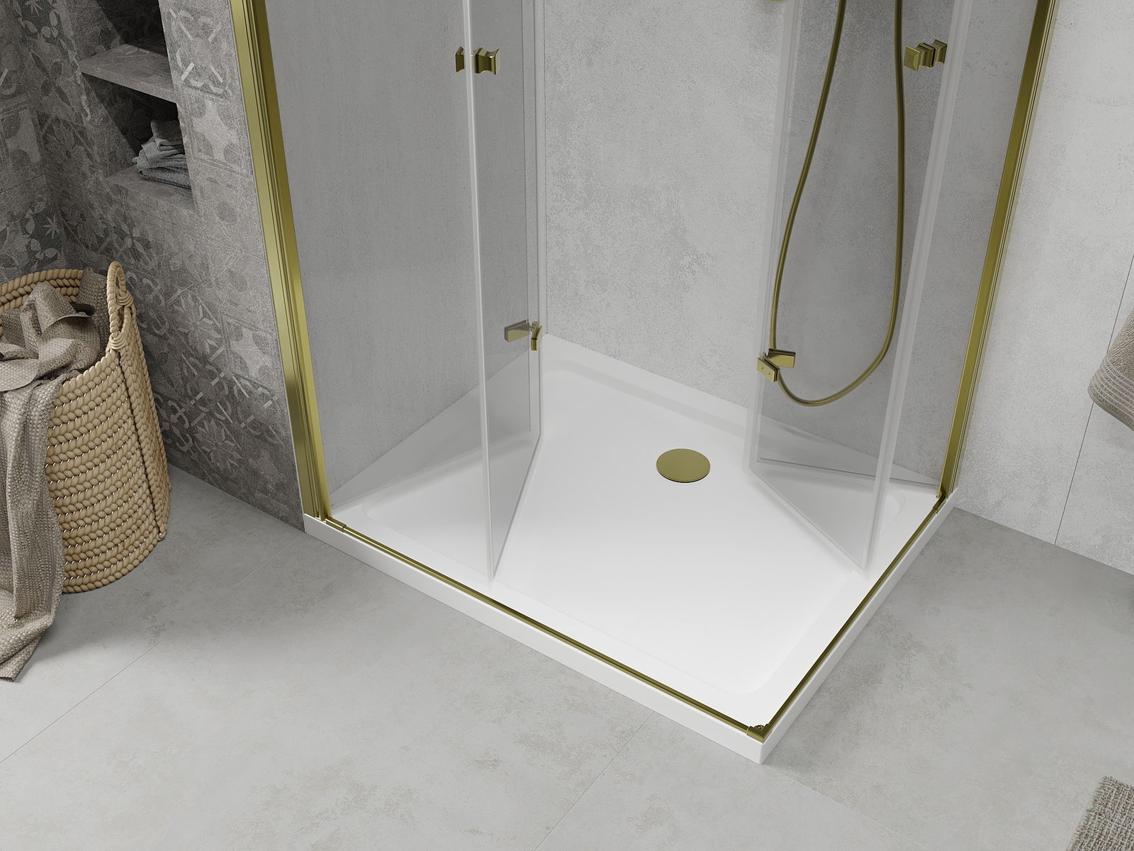 The ability to fold the door, both outside and inside, allows you to get more space when not using the shower. It is an ideal solution for smaller bathrooms, maximally using the available surface.