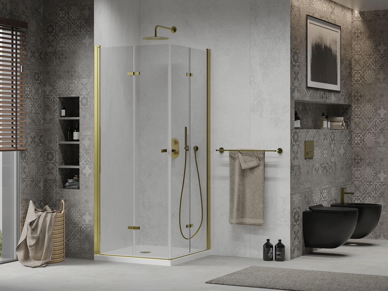 The ability to fold the door, both outside and inside, allows you to get more space when not using the shower. It is an ideal solution for smaller bathrooms, maximally using the available surface.