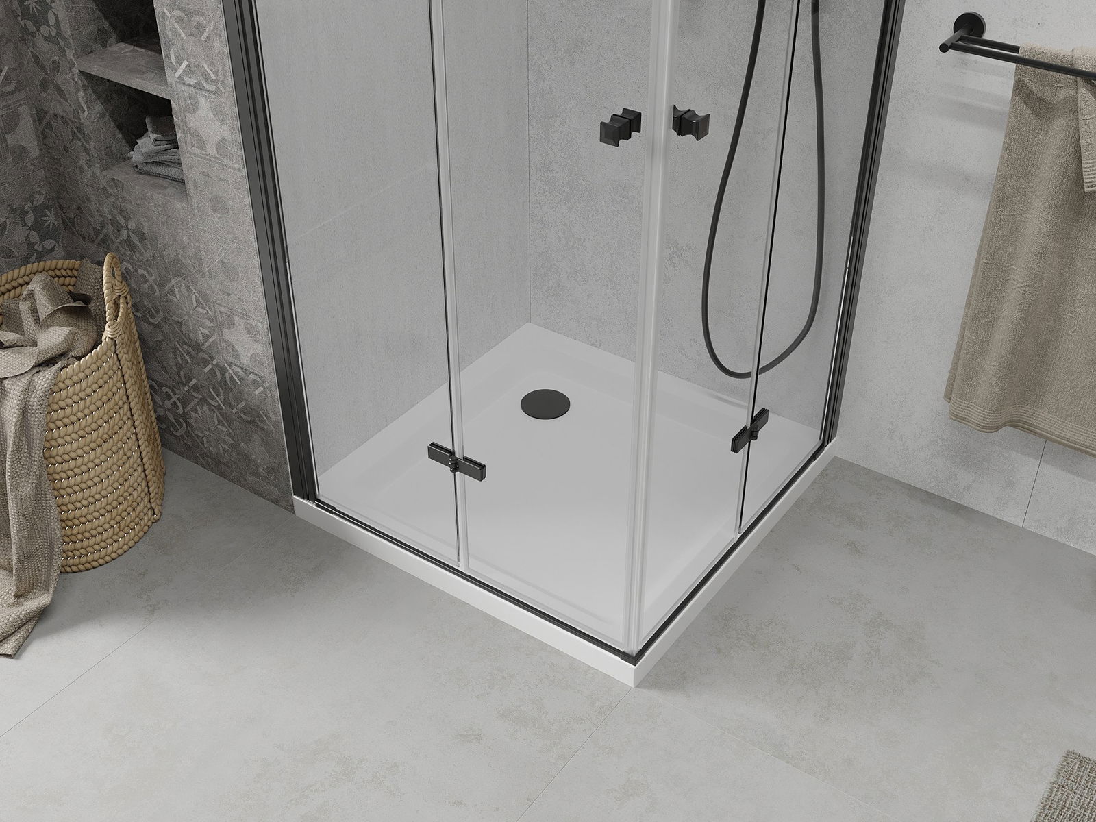 The ability to fold the door, both outside and inside, allows you to get more space when not using the shower. It is an ideal solution for smaller bathrooms, maximally using the available surface.