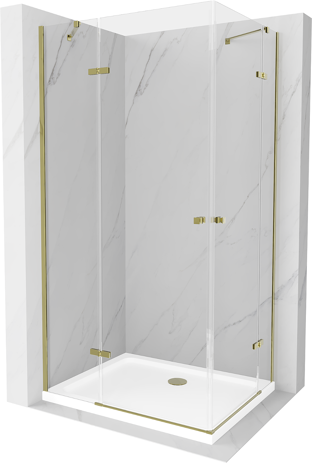 Mexen Roma Duo hinged shower cabin 80 x 70 cm, transparent, gold + Flat shower tray - 854-080-070-50-02-4010G