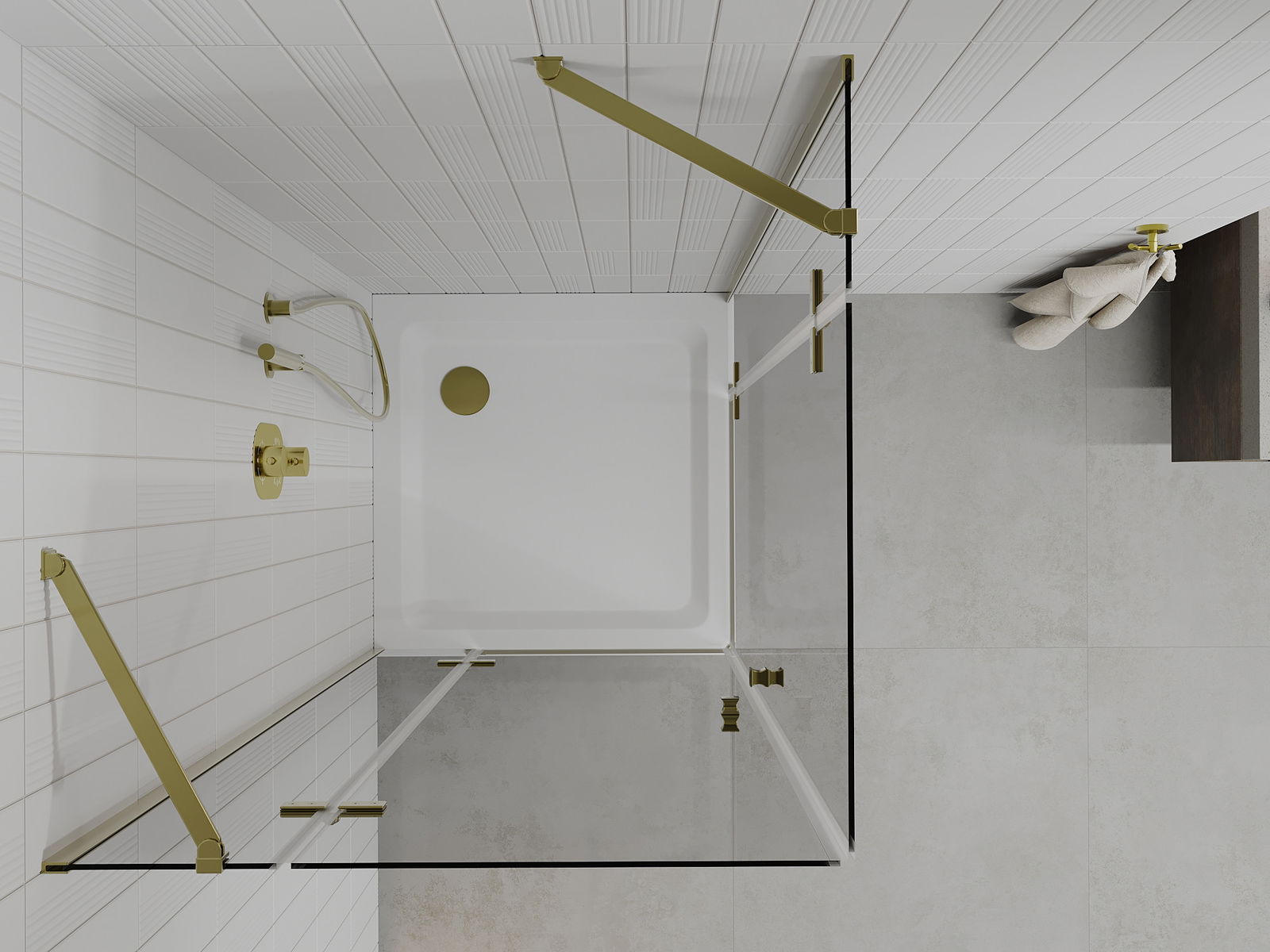 Mexen Roma Duo Hinged Shower Enclosure 80 x 80 cm, Transparent, Gold + Flat Tray - 854-080-080-50-02-4010G