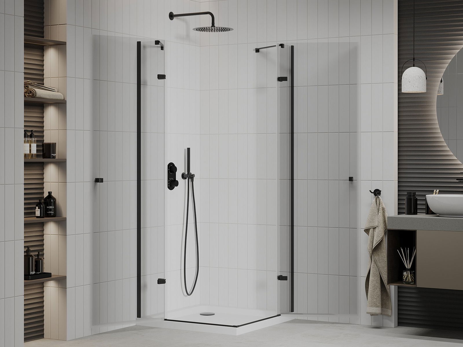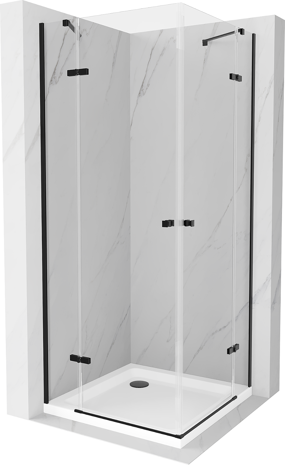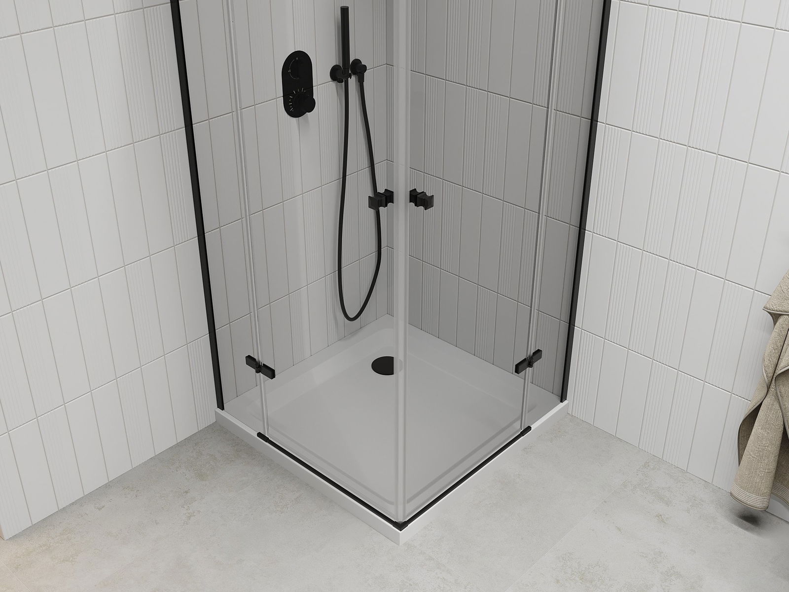 Mexen Roma Duo hinged shower cabin 70 x 70 cm, transparent, black + Flat shower tray - 854-070-070-70-02-4010B