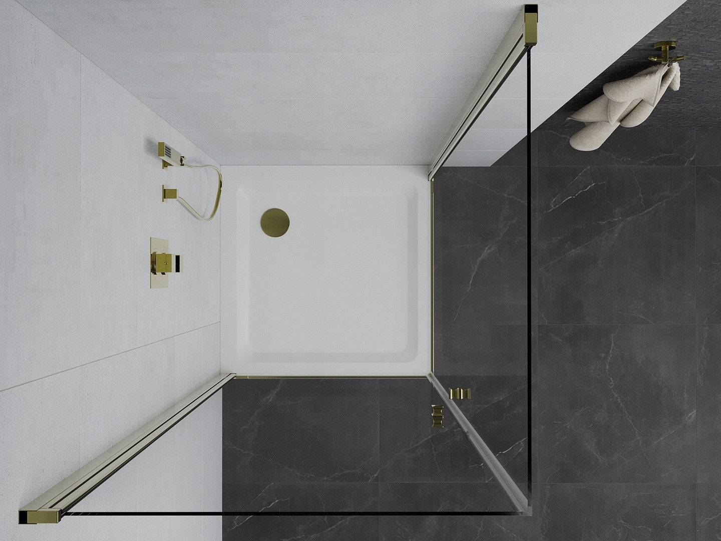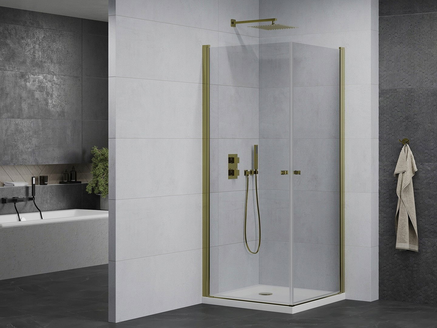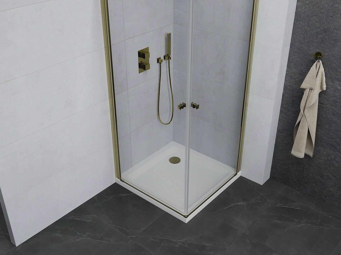 Mexen Pretoria Duo Pivot Shower Enclosure 70 x 70 cm, Transparent, Gold + Flat Tray - 852-070-070-50-02-4010G