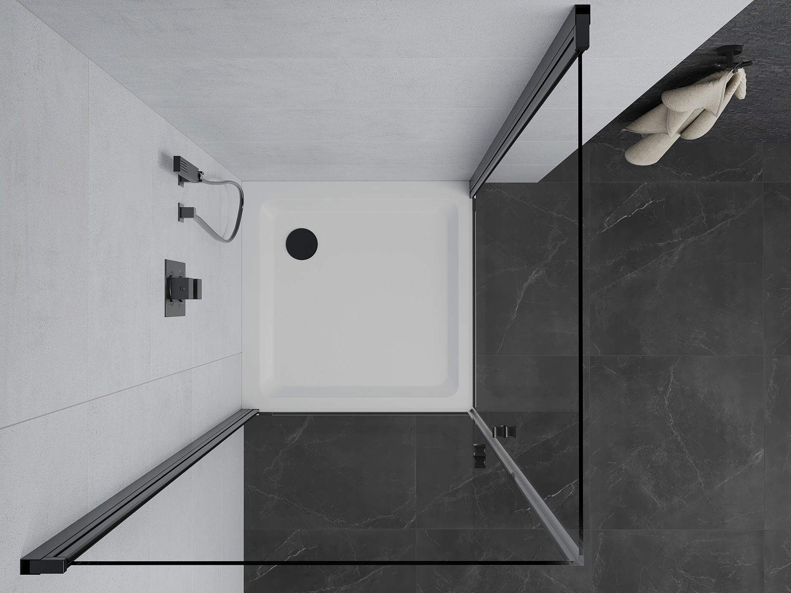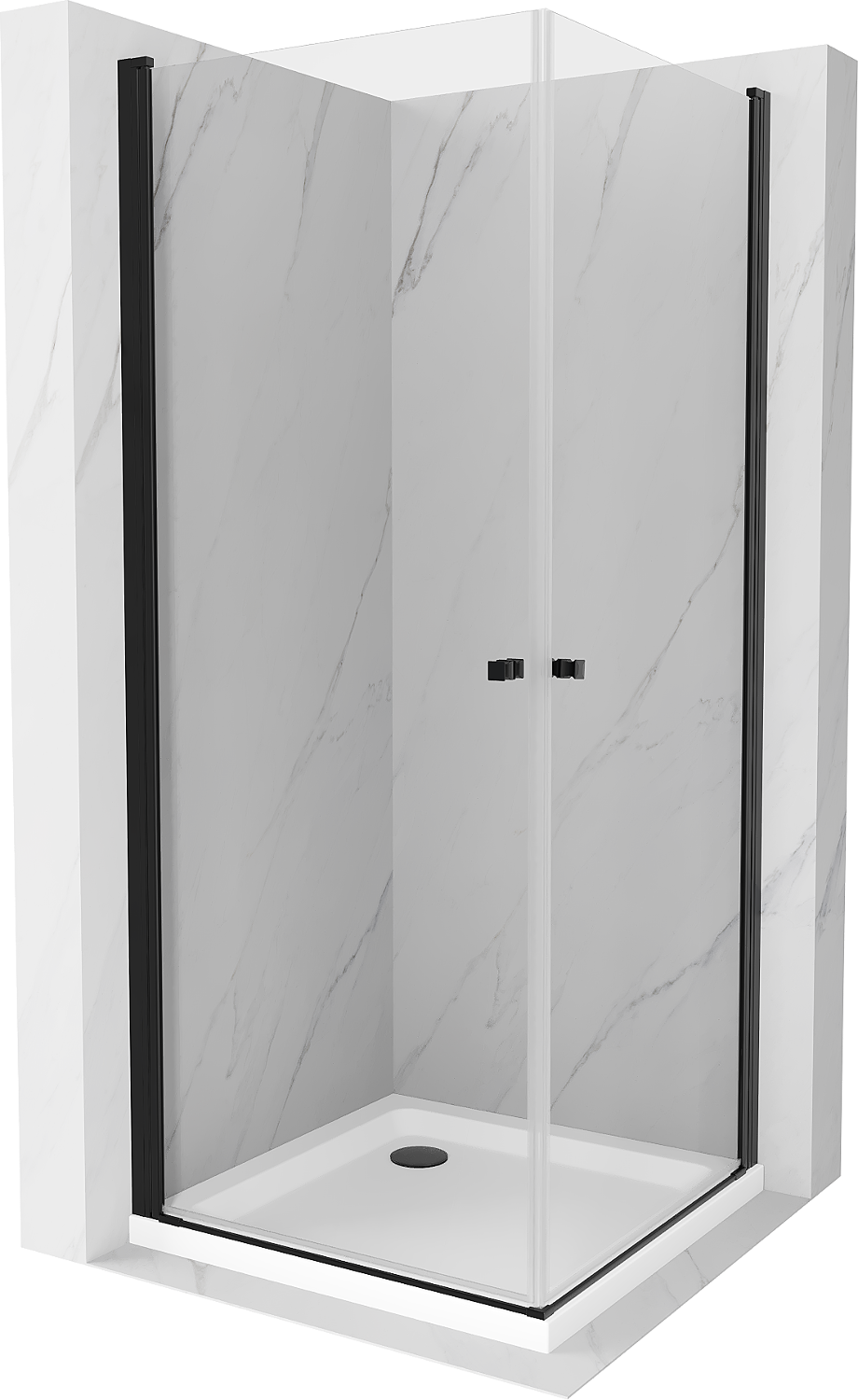 Mexen Pretoria Duo 80 x 80 cm Hinged Shower Cabin, Transparent, Black + Flat Tray - 852-080-080-70-02-4010B