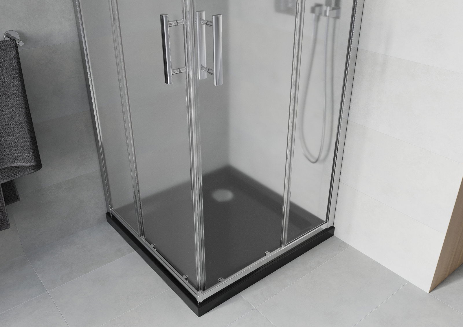 Mexen Rio square shower enclosure 90 x 90 cm, frost, chrome + Flat tray, black - 860-090-090-01-30-4070