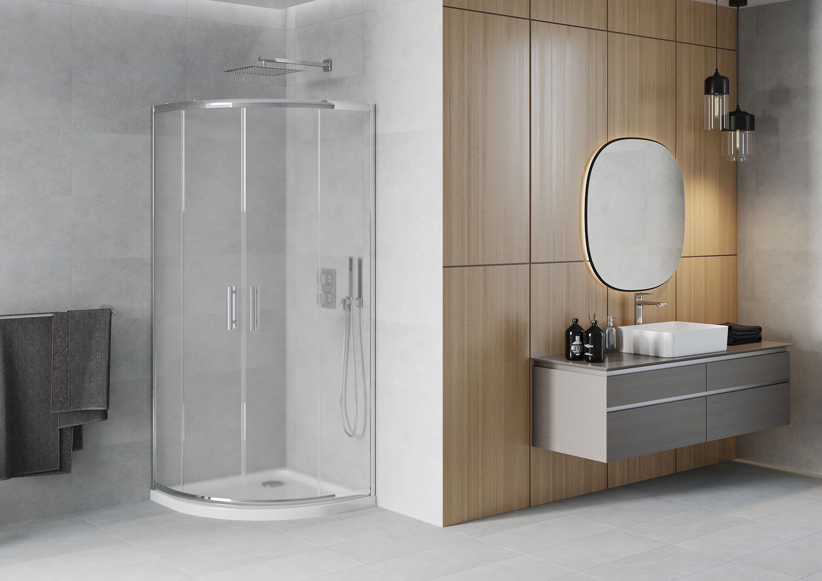 Sliding doors move around special guides and do not require additional space to open them, so they will work in smaller bathrooms. Thanks to double rollers made of durable plastic, their movement is fluid.