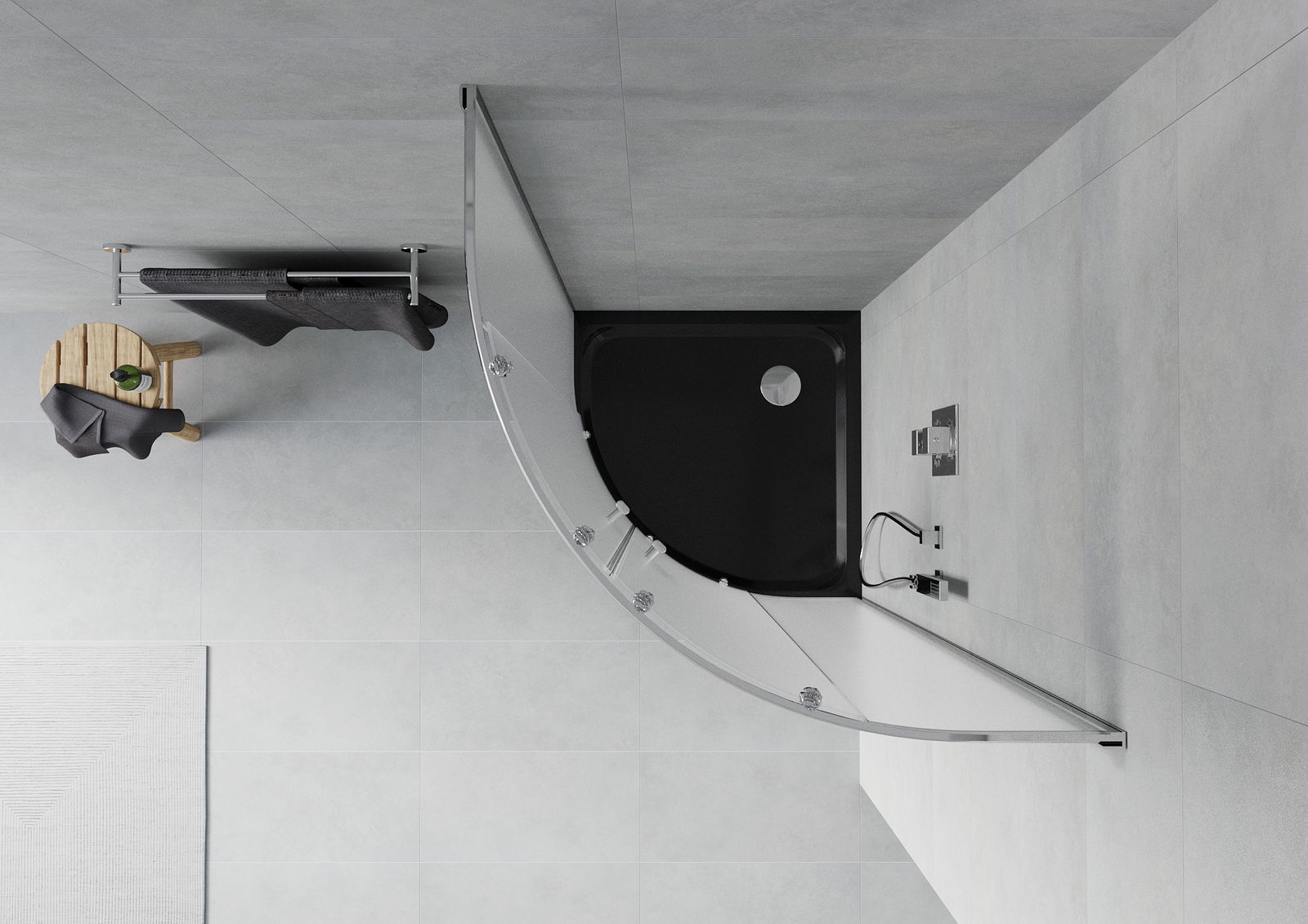 Mexen Rio Semi-Circular Shower Cabin 80 x 80 cm, Frost, Chrome + Flat Tray, Black - 863-080-080-01-30-4170