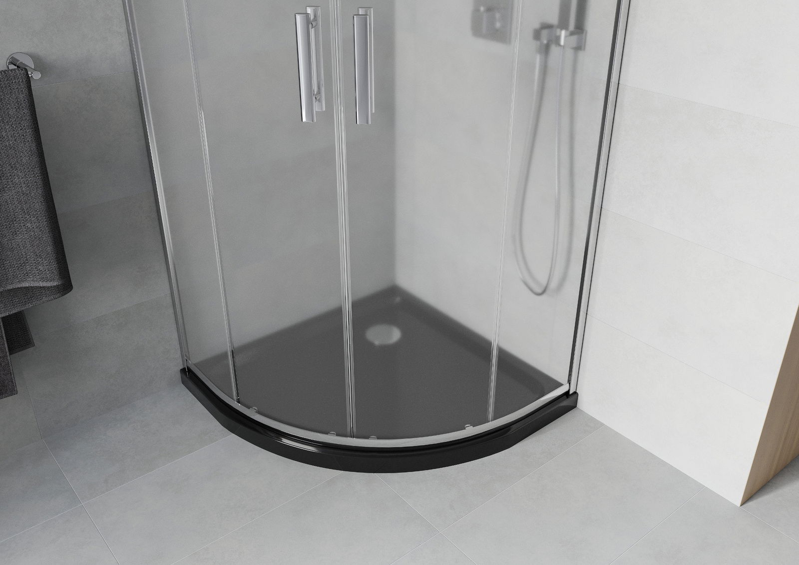 Mexen Rio Semi-Circular Shower Enclosure 90 x 90 cm, Frosted, Chrome + Flat Tray, Black - 863-090-090-01-30-4170