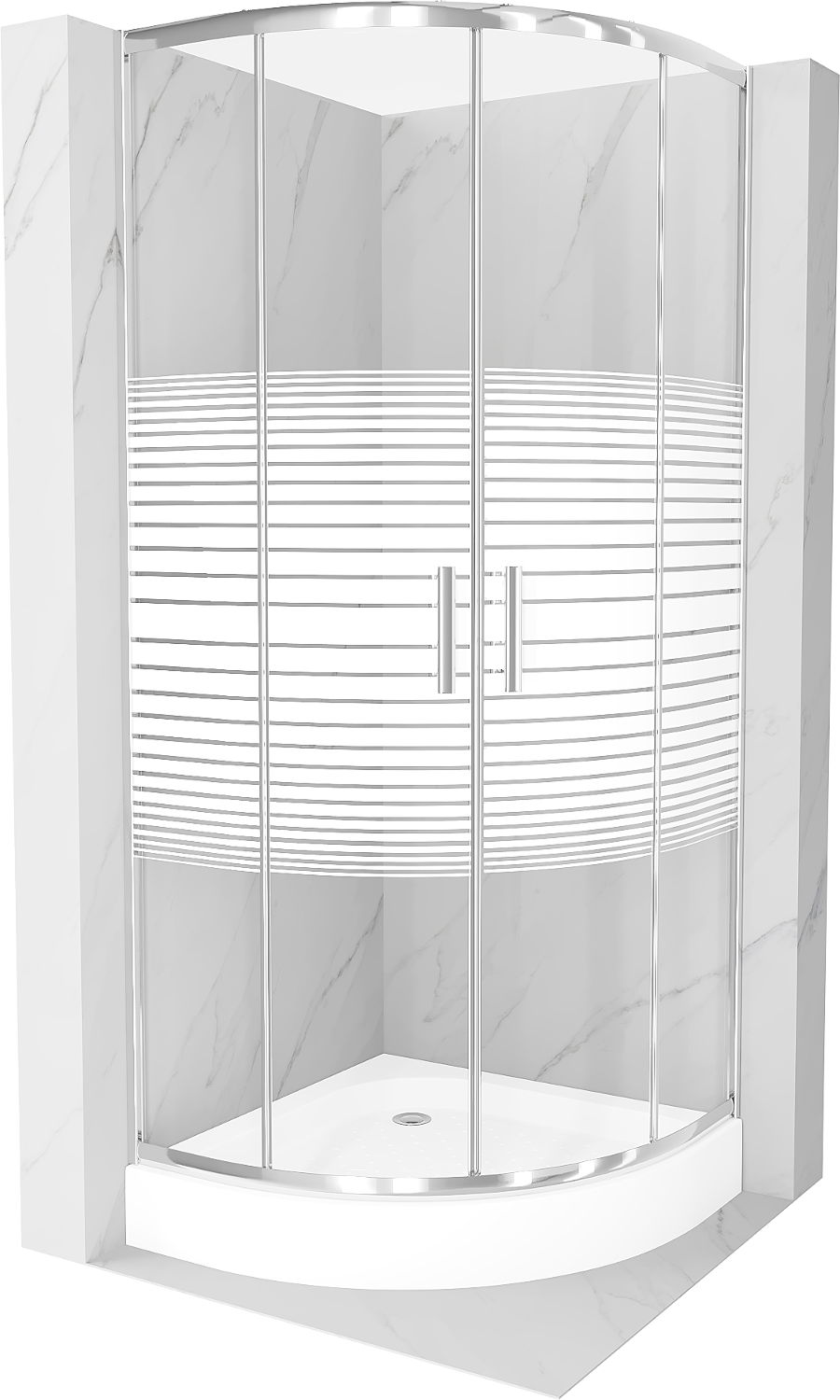 Mexen Rio Semi-Circular Shower Enclosure 70 x 70 cm, White Stripes, Chrome + Rio Tray, White - 863-070-070-01-20-4710