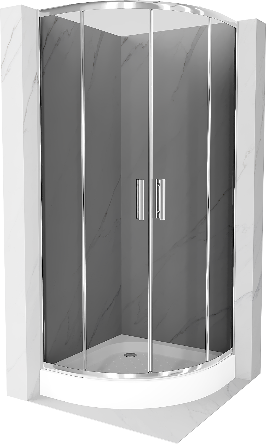 Mexen Rio semi-circular shower enclosure 80 x 80 cm, graphite, chrome + Rio shower tray, white - 863-080-080-01-40-4710