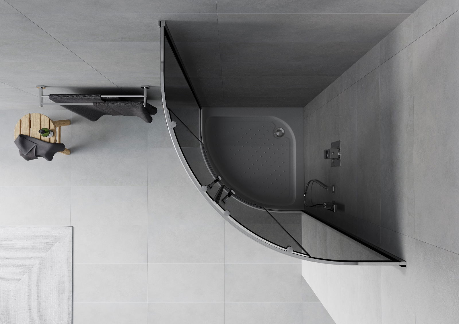 Mexen Rio semi-circular shower cabin 90 x 90 cm, graphite, chrome + Rio shower tray, white - 863-090-090-01-40-4710