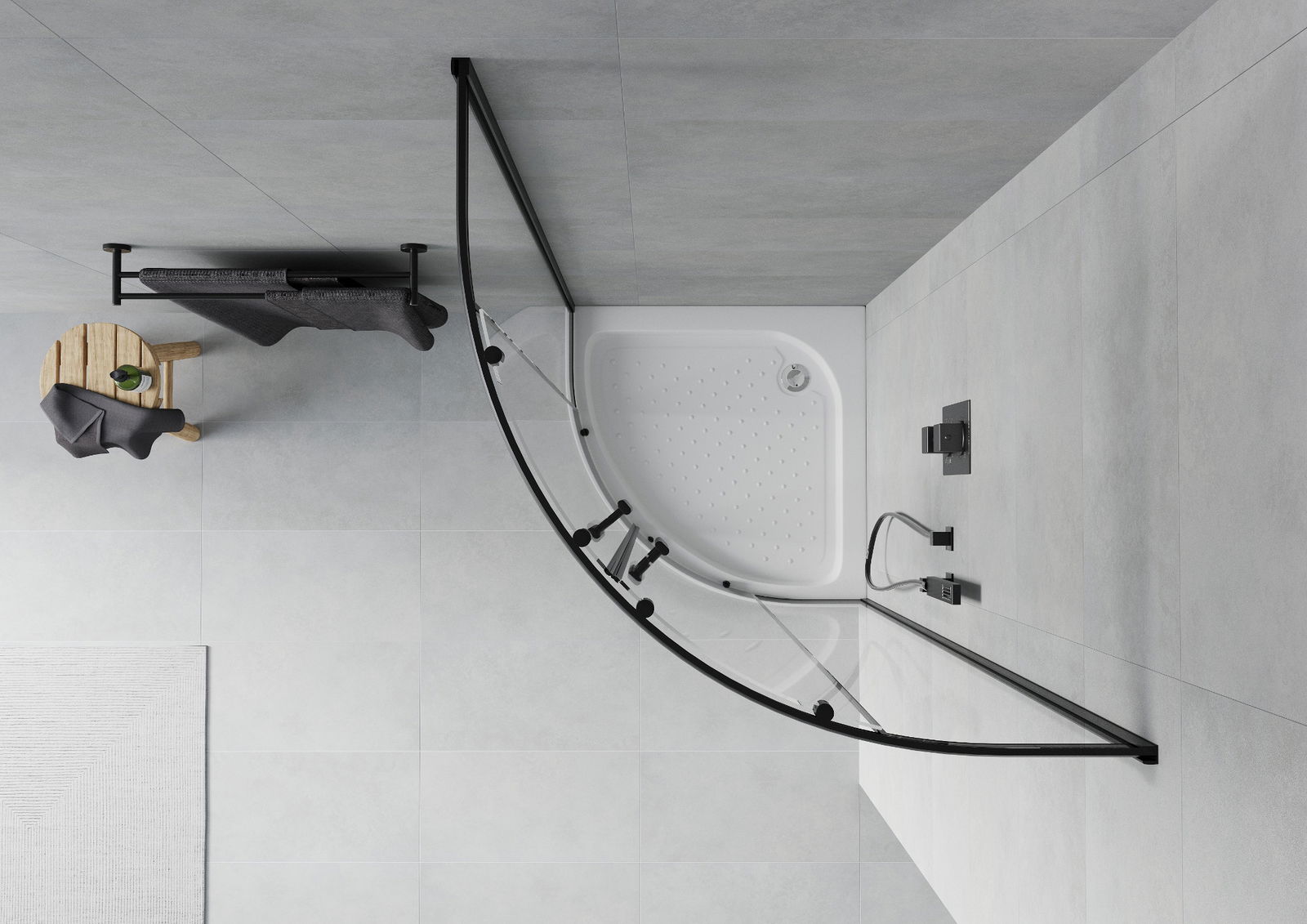 Mexen Rio semi-circular shower cabin 90 x 90 cm, transparent, black + Rio tray, white - 863-090-090-70-00-4710