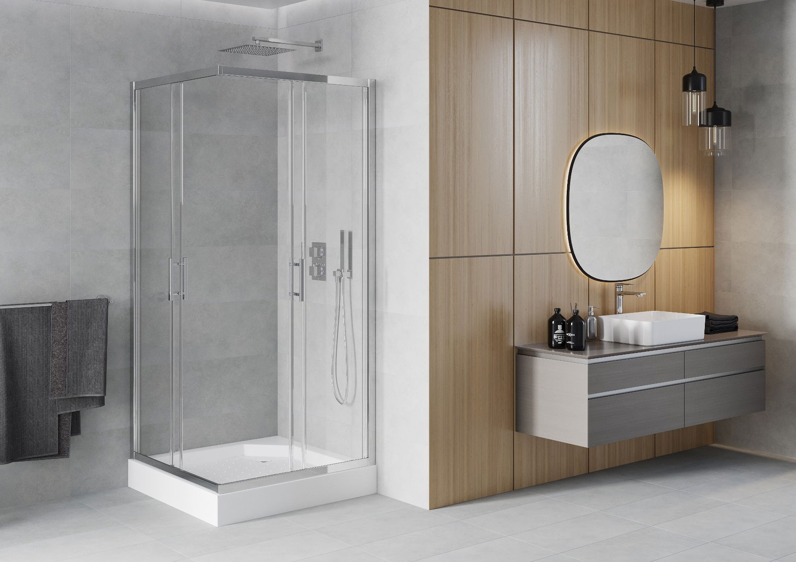 Sliding doors move around special guides and do not require additional space to open them, so they will work in smaller bathrooms. Thanks to double rollers made of durable plastic, their movement is fluid.