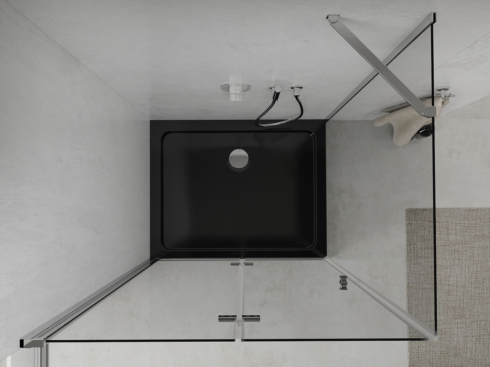 Mexen Lima folding shower enclosure 100 x 80 cm, transparent, chrome + Flat tray, black - 856-100-080-01-00-4070
