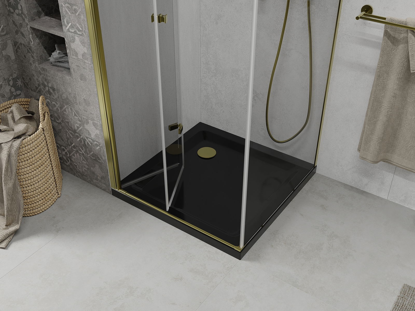 The ability to fold the door, both outside and inside, allows you to get more space when not using the shower. It is an ideal solution for smaller bathrooms, maximally using the available surface.