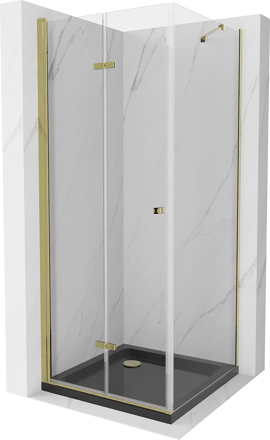 Mexen Lima folding shower enclosure 80 x 80 cm, transparent, gold + Flat tray, black - 856-080-080-50-00-4070G