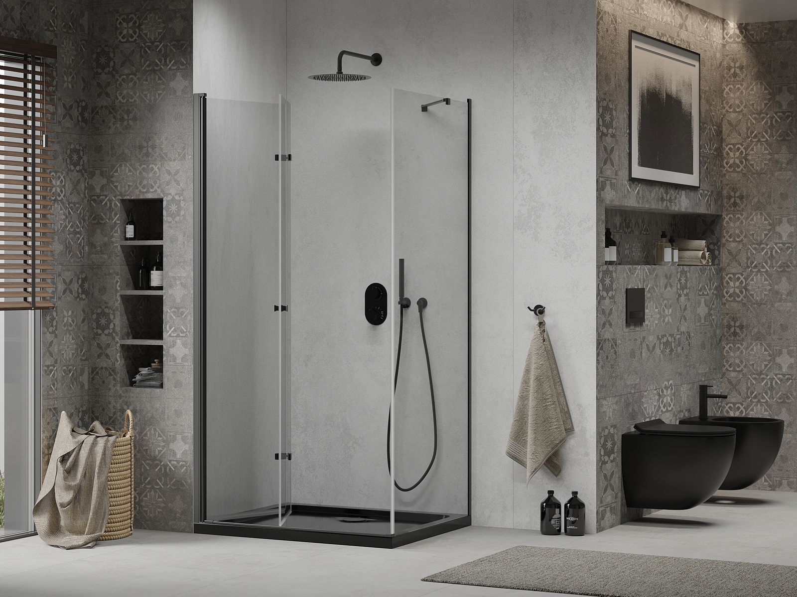 The ability to fold the door, both outside and inside, allows you to get more space when not using the shower. It is an ideal solution for smaller bathrooms, maximally using the available surface.