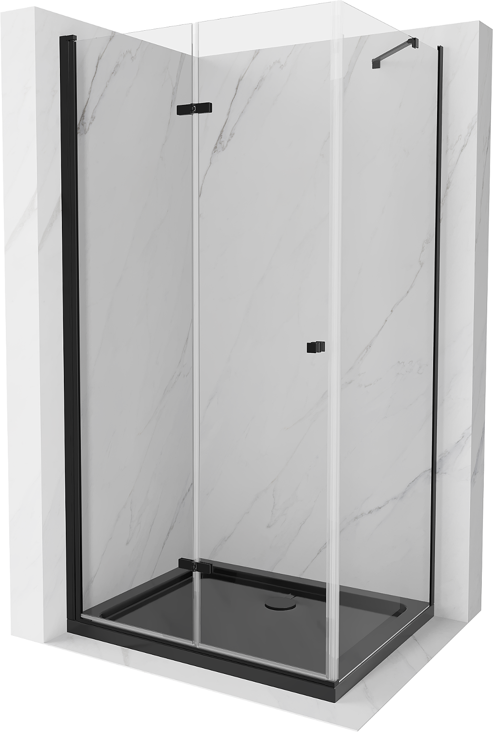 Mexen Lima folding shower enclosure 90 x 100 cm, transparent, black + Flat tray, black - 856-090-100-70-00-4070B