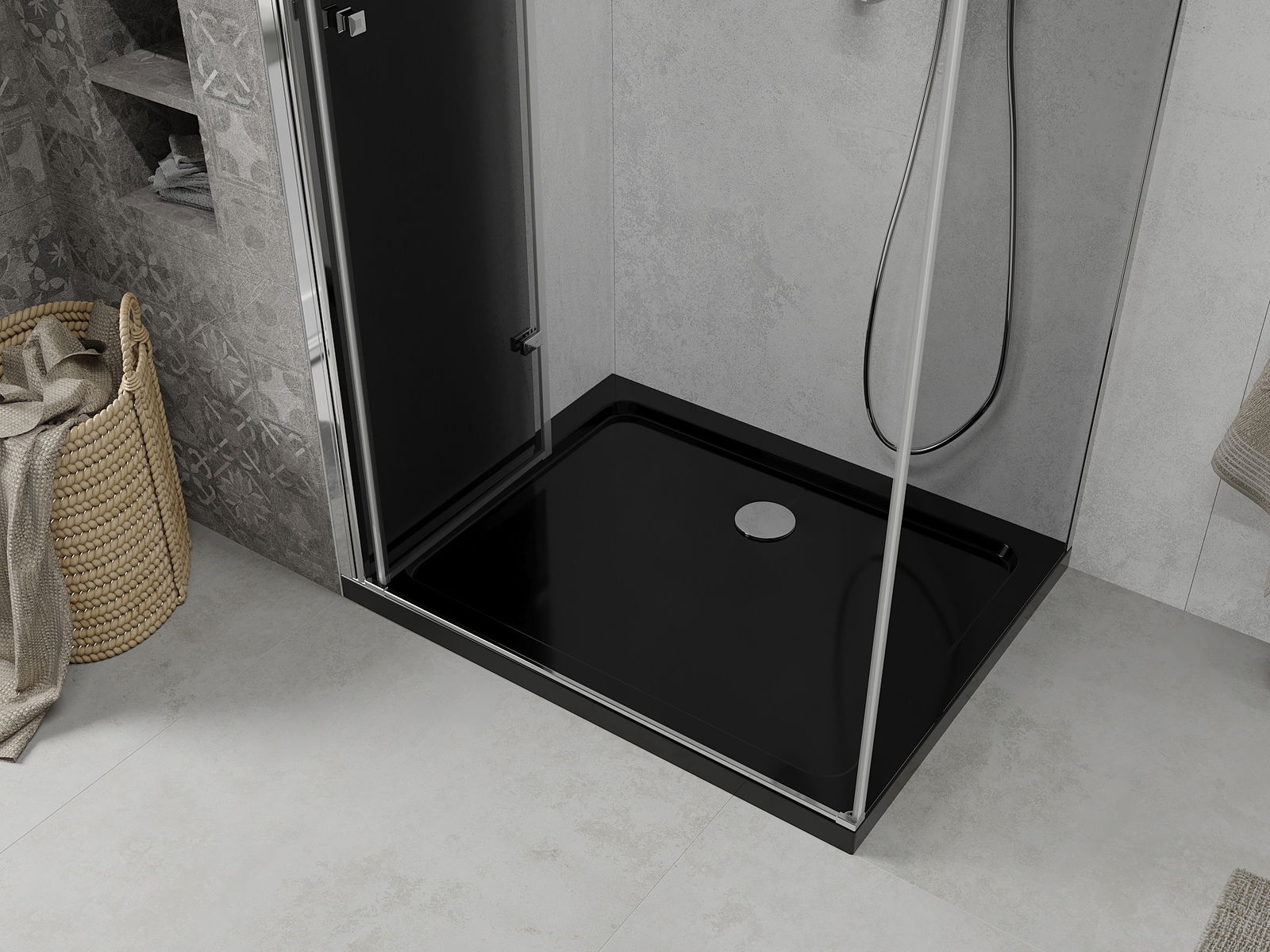 Mexen Lima folding shower enclosure 80 x 100 cm, graphite, chrome + Flat shower tray, black - 856-080-100-01-40-4070