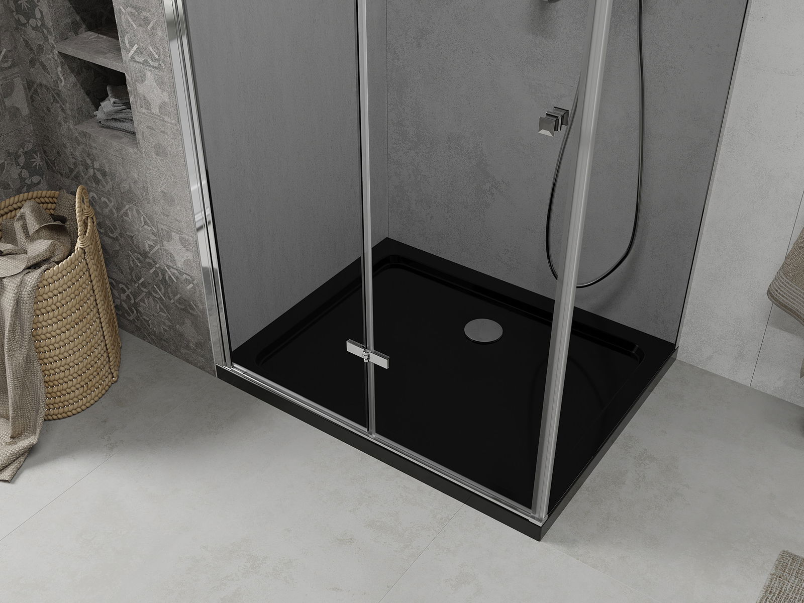 Mexen Lima folding shower cabin 100 x 90 cm, graphite, chrome + Flat shower tray, black - 856-100-090-01-40-4070