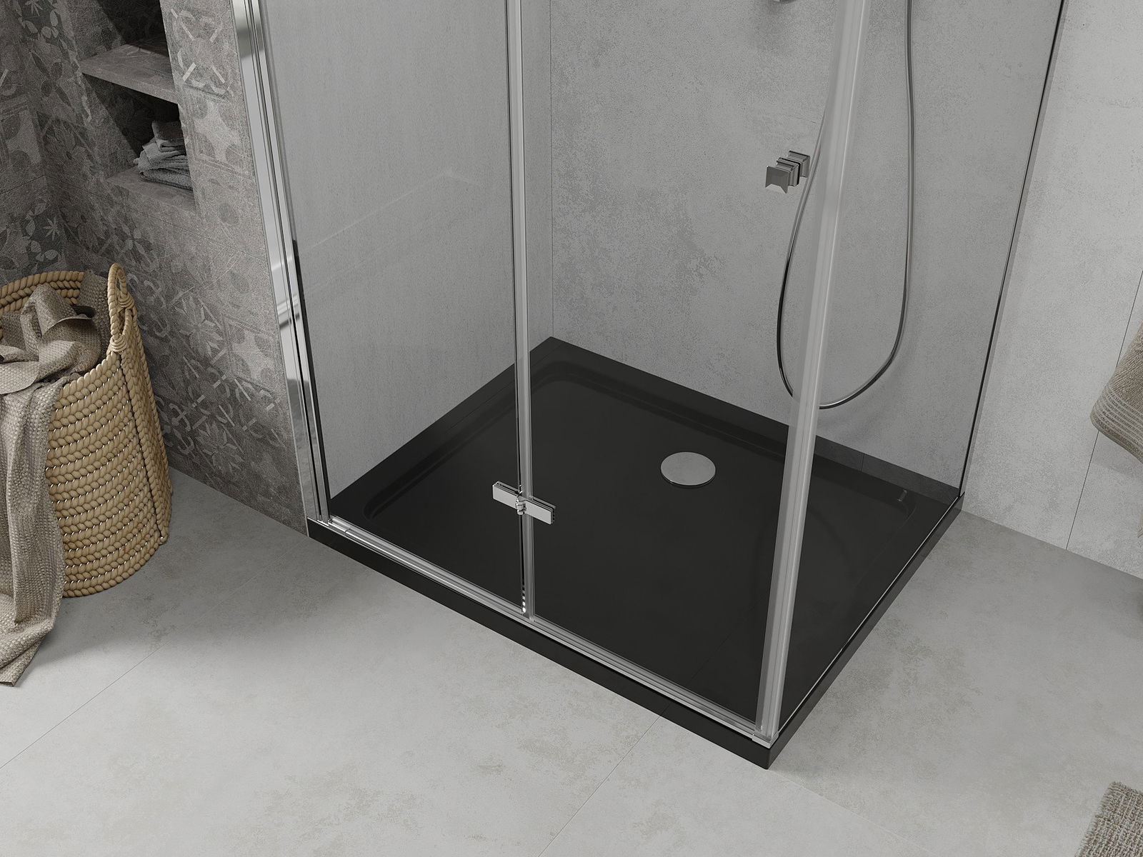 Mexen Lima folding shower enclosure 90 x 120 cm, transparent, chrome + Flat tray, black - 856-090-120-01-00-4070