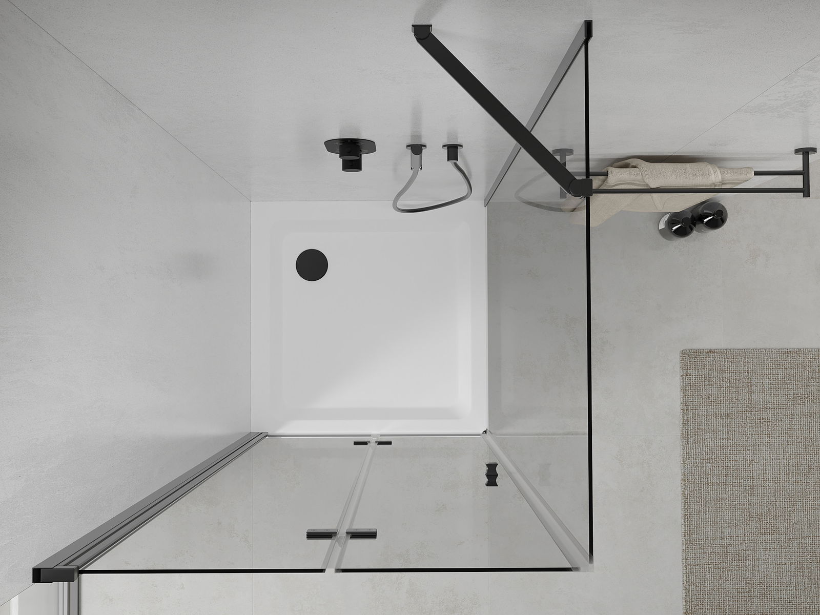 Mexen Lima folding shower enclosure 80 x 80 cm, transparent, black + Flat shower tray, white - 856-080-080-70-00-4010B