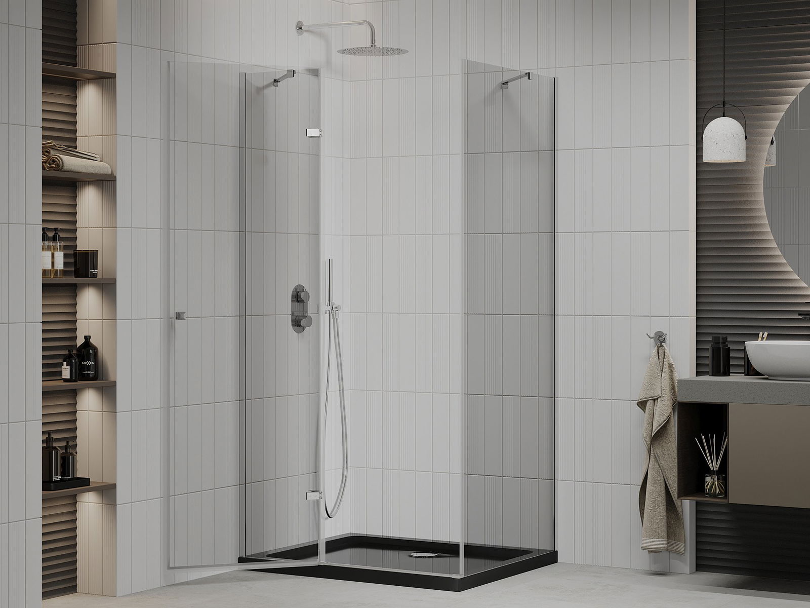 Mexen Roma hinged shower cabin 80 x 100 cm, transparent, chrome + Flat tray, black - 854-080-100-01-00-4070