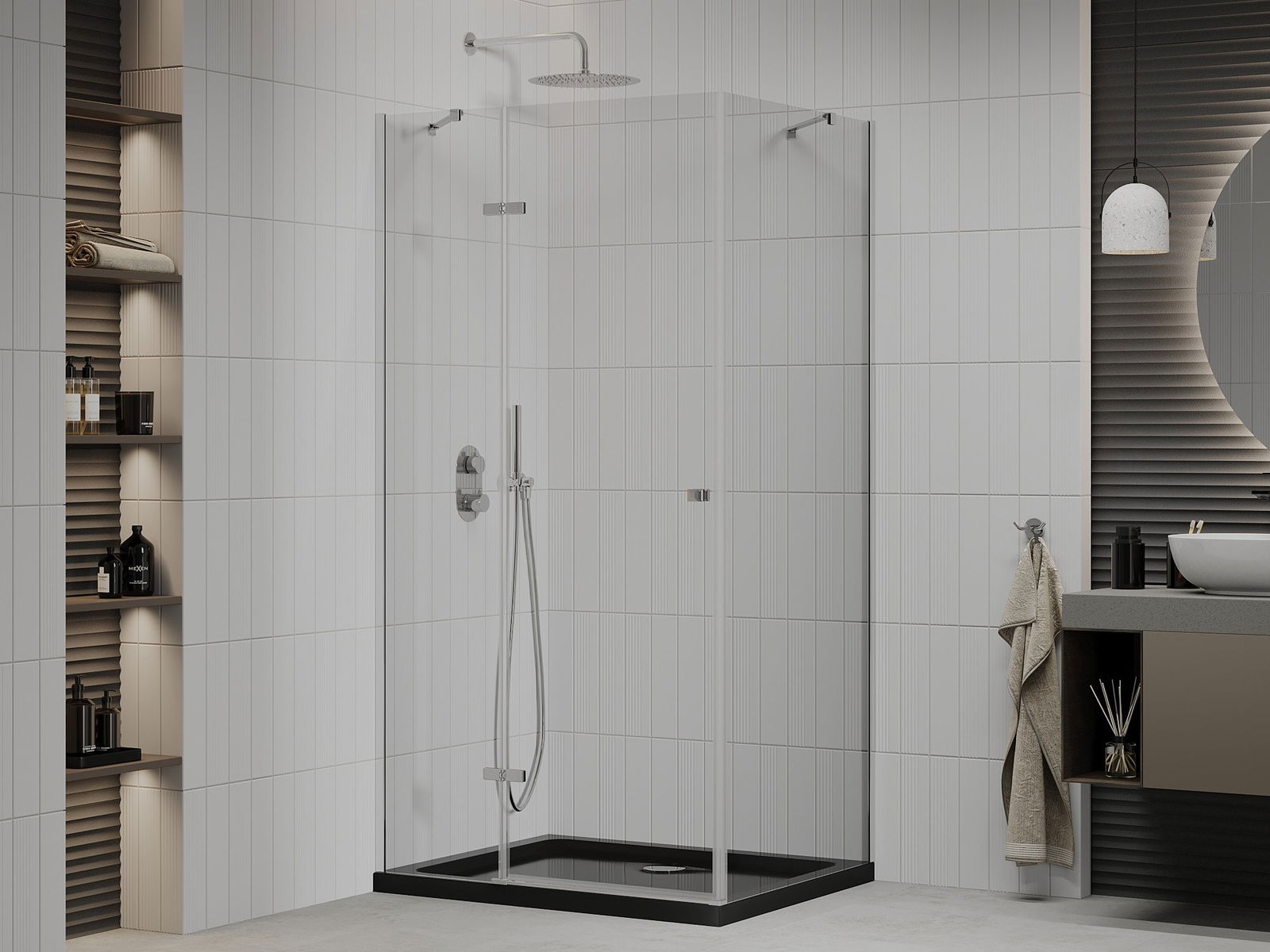 Mexen Roma Hinged Shower Enclosure 90 x 120 cm, Transparent, Chrome + Flat Tray, Black - 854-090-120-01-00-4070