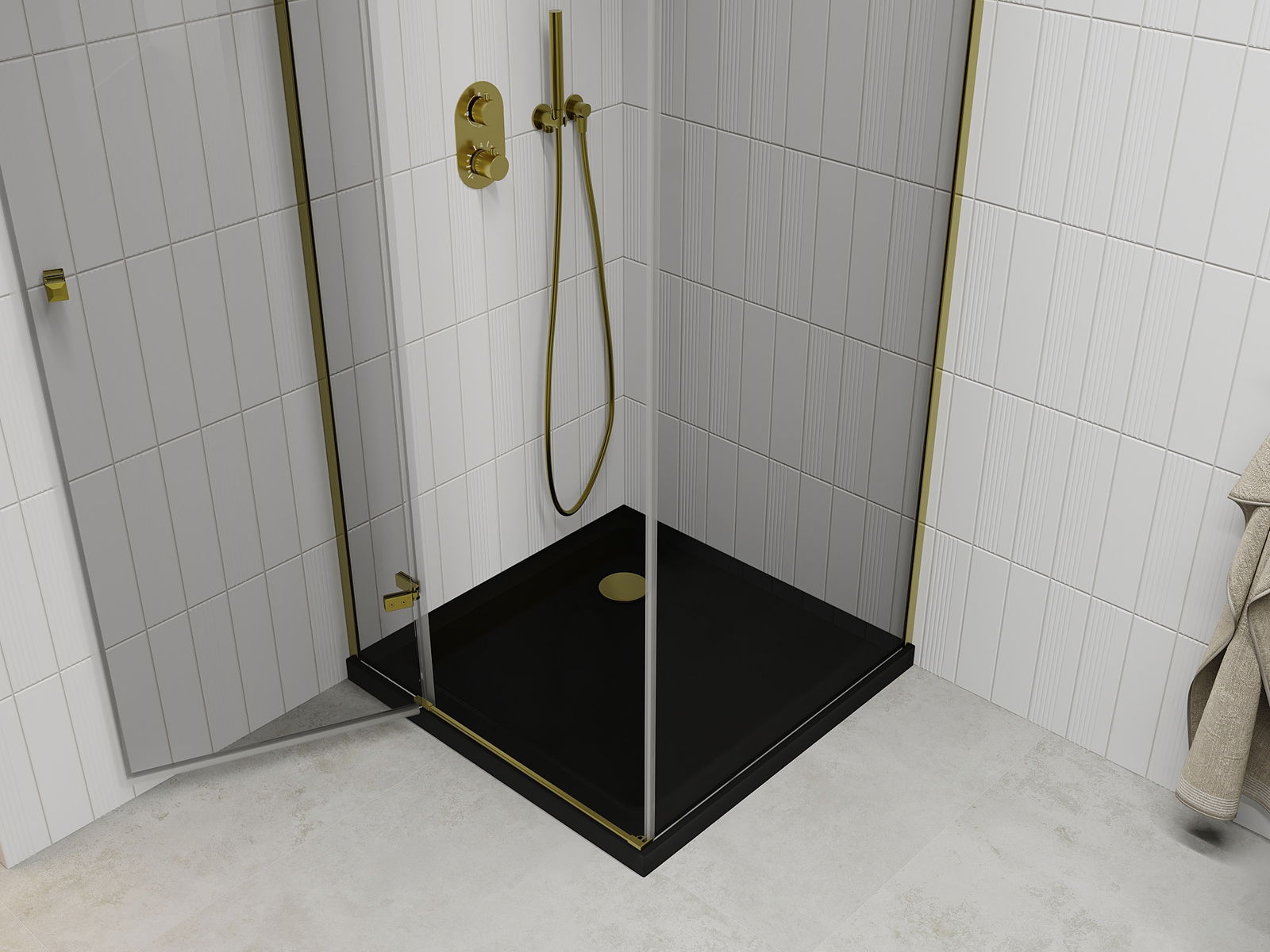 The handy and comfortable handle is made of durable and resistant metal. The fashionable shape, combined with a finish matching the color of the profiles, gives the whole a modern and stylish look, emphasizing the aesthetics of any bathroom.