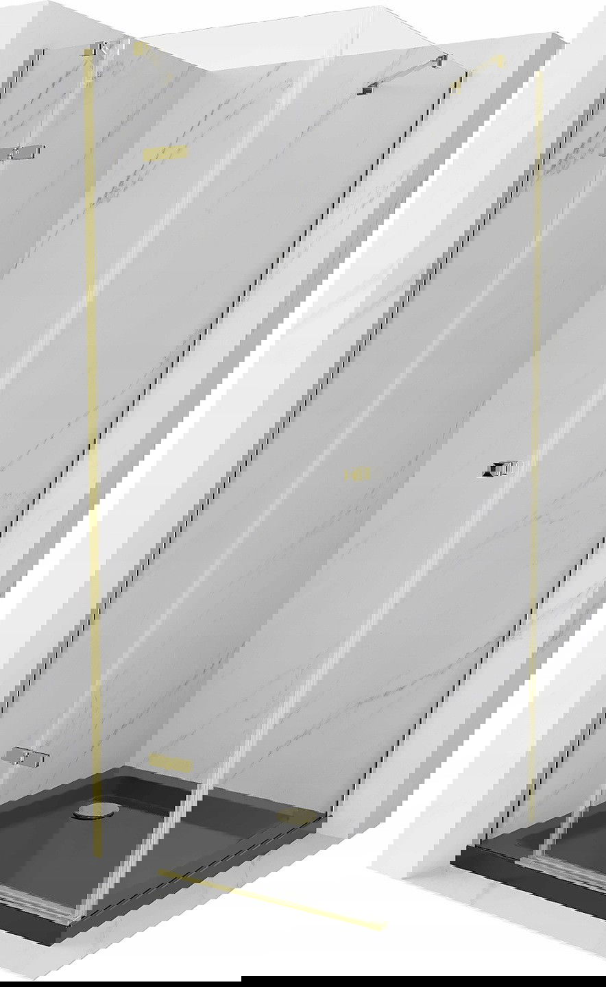 Mexen Roma 90 x 90 cm Hinged Shower Enclosure, Transparent, Gold + Flat Black Tray - 854-090-090-50-00-4070G