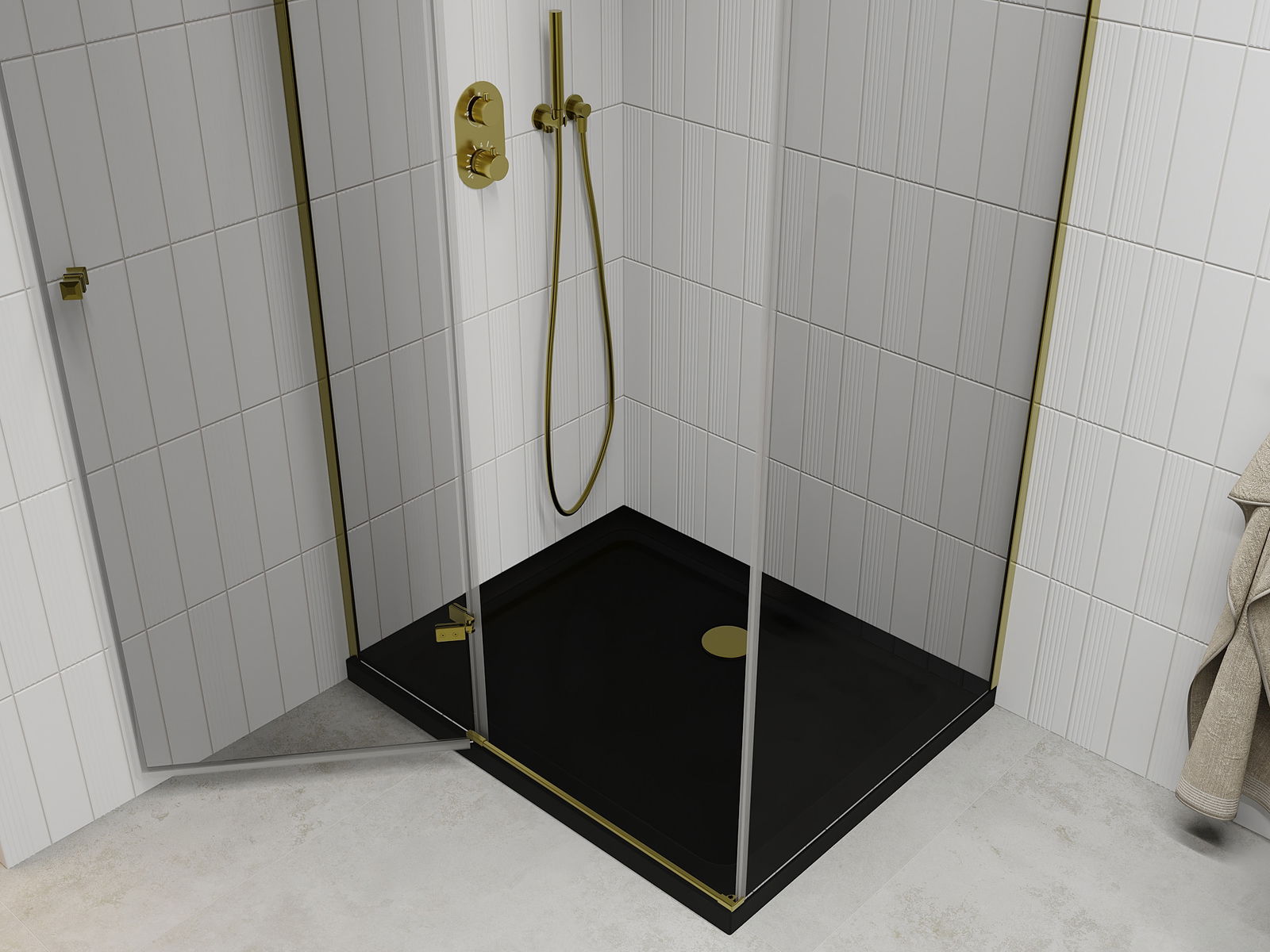 Mexen Roma pivot shower enclosure 90 x 100 cm, transparent, gold + Flat tray, black - 854-090-100-50-00-4070G