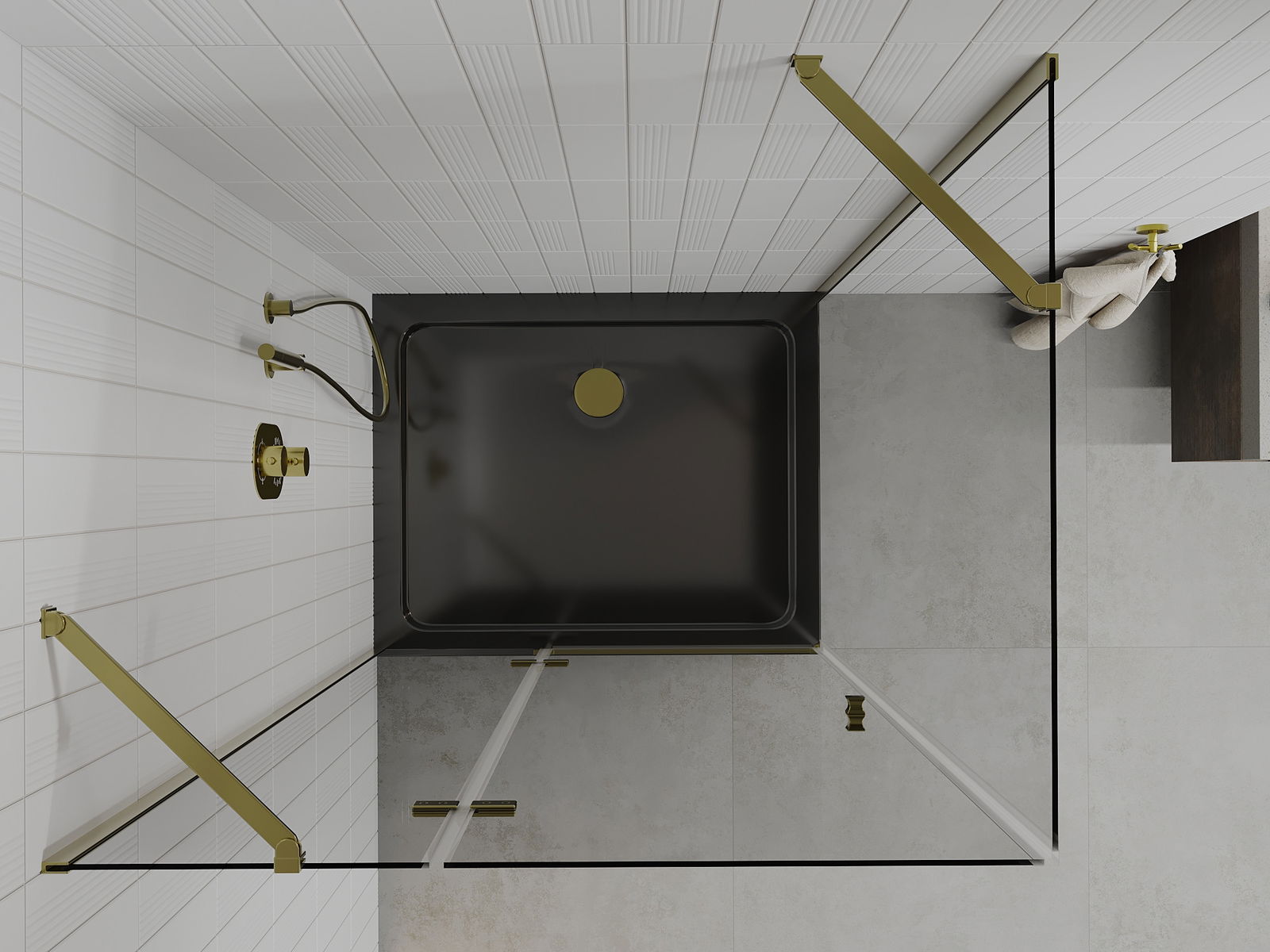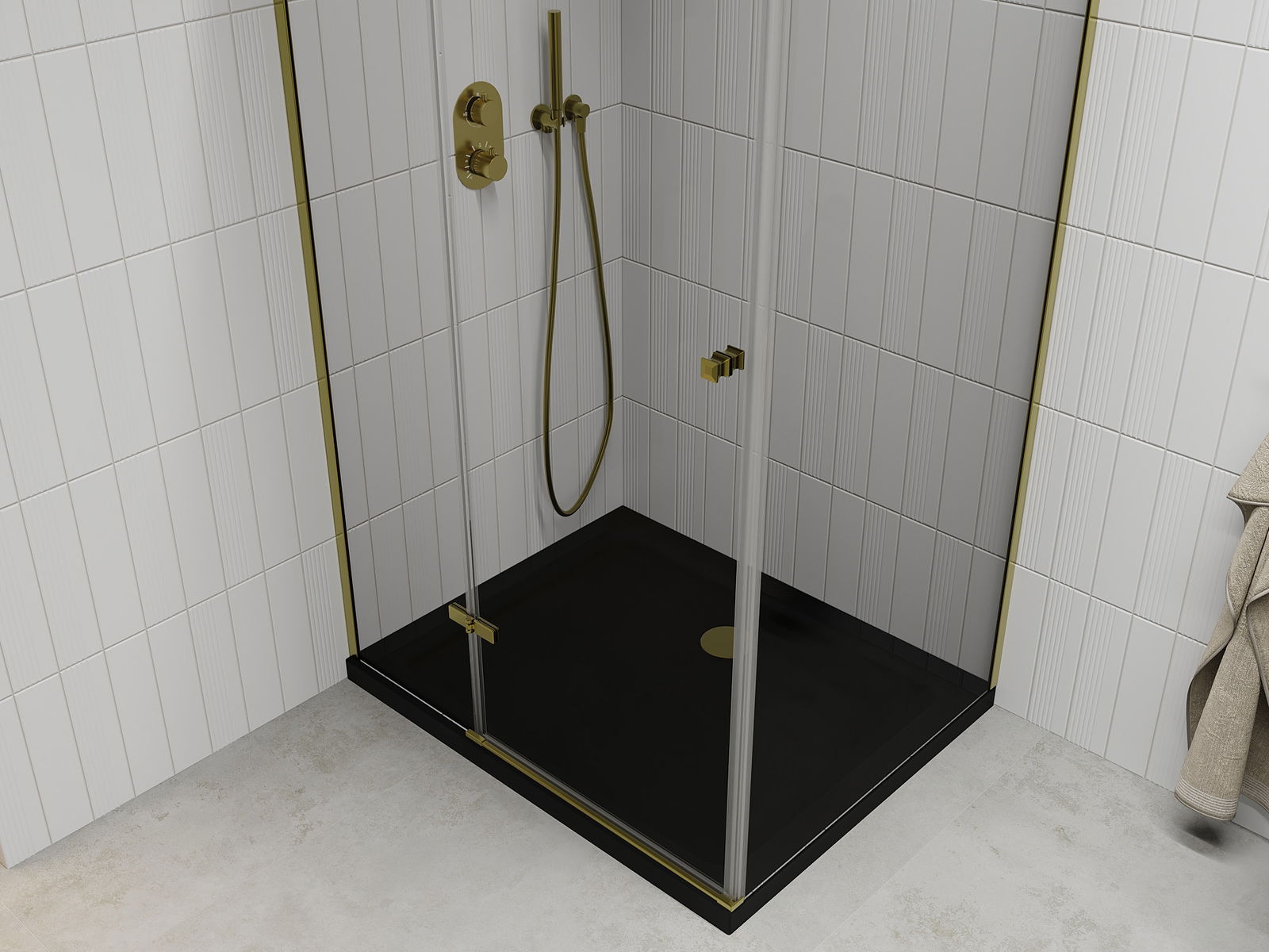 Mexen Roma hinged shower enclosure 120 x 80 cm, transparent, gold + Flat tray, black - 854-120-080-50-00-4070G